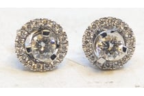 18CT WHITE GOLD DIAMOND STUD EARRINGS WITH HALO...