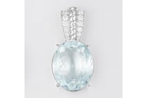 14CT WHITE GOLD AQUAMARINE AND DIAMOND PENDANT...