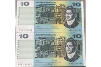 1991 AUSTRALIA $10 FRASER COLE CONSECUTIVE SERIAL...