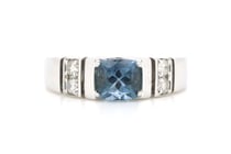 14K WHITE GOLD, AQUAMARINE AND DIAMOND, DRESS...