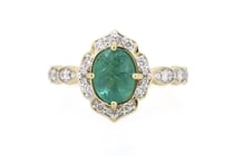14K YELLOW GOLD, EMERALD AND DIAMOND, DRESS RING....