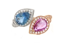14K WHITE/ROSE GOLD, PINK SAPPHIRE, AQUAMARINE...