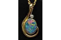 18K YELLOW GOLD OPAL AND DIAMOND PENDANT...