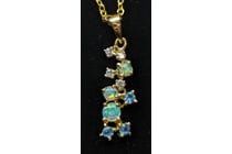 14K YELLOW GOLD OPAL, DIAMOND AND TOPAZ PENDANT...