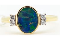 14K YELLOW GOLD OPAL AND DIAMOND RING Ring...
