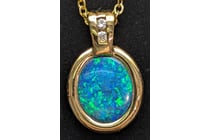 14K YELLOW GOLD DIAMOND AND BLACK OPAL PENDANT...