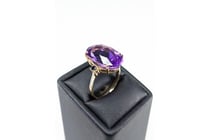 9CT YELLOW GOLD AMETHYST, SAPPHIRE AND DIAMOND...