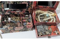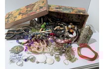 DECOUPAGE BOX WITH COSTUME JEWELLERY Size: 27cm...