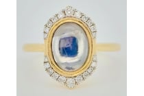 14CT YELLOW GOLD MOONSTONE AND DIAMOND HALO RING...