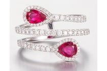 14CT WHITE GOLD RUBY AND DIAMOND SPIRAL RING...