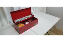 Red Tool Box Including Drill Bits, Cordless Drill...