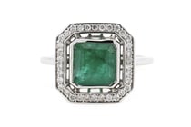 14K WHITE GOLD, EMERALD AND DIAMOND, ART DECO...