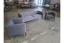 2 x ligrey/blue fabric couches 90cm x 102cm x...