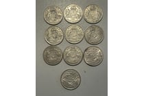 10 X 1951 FLORINS 113.1 Grams @ 50% Silver...