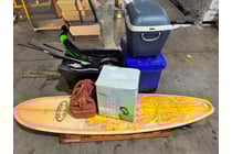 Sporting goods including surfboard, tennis...