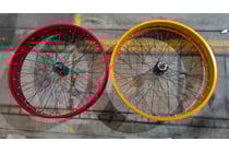 2 x Aluminium coloured bicycle wheels, 22. 6...