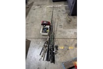 Fishing rods, reels and tackle box Note: Sold as...