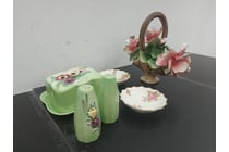 ANEMONE PATTERN BUTTER DISH, SALT AND PEPPER...