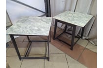 Pair Of Side Tables, Marble Style, White & Black...