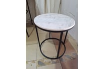Side Table, Marble Style, White & Black Finish...