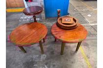 Assortment round timber coffee tables, cherry...