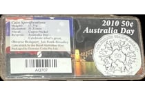 2010-50C AUSTRALIA DAY COIN IN DOWNIES CARD...