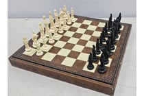 ORNATE WOODEN CHESS AND CHECKERS SET WITH BOARD....