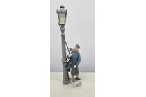 PORCELAIN FIGURINE OF LAMPLIGHTER WITH STREET...