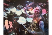 IRON MAIDENS NICO MCBRAIN SIGNED DRUM PHOTO Nico...