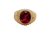 18CT YELLOW GOLD RUBY MEN'S RING, Oval Cut...