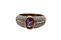 9CT YELLOW GOLD AMETHYST & 0.30CT DIAMOND...
