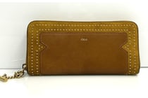 CHLOÉ STUDDED ZIP AROUND WALLET Smooth Calfskin...