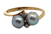 18CT YELLOW GOLD DOUBLE SILVER PEARL DIAMOND...