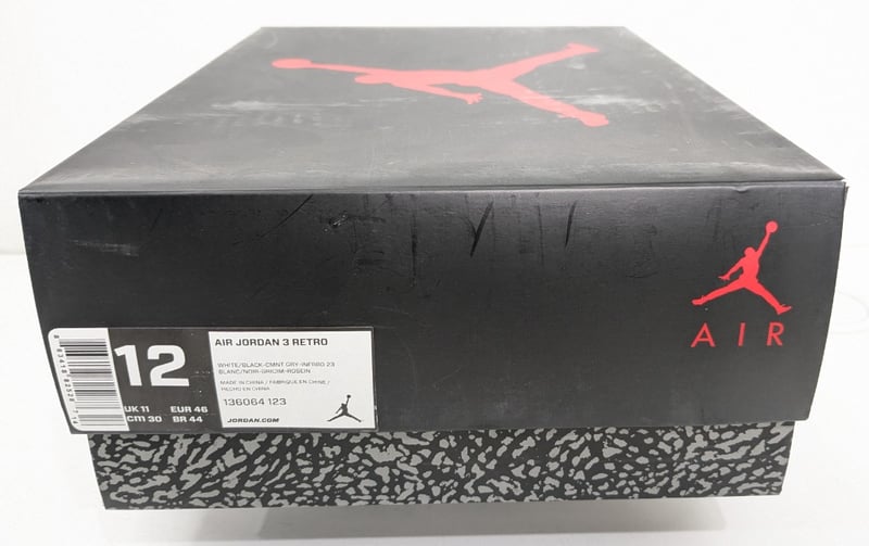 JORDAN 3 RETRO, INFRARED 23, WHITE/CEMENT GREY-INFRARED 23-BLACK, US12 136064123 CONDITION: NEW IN BOX (REFER TO THE IMAGES)