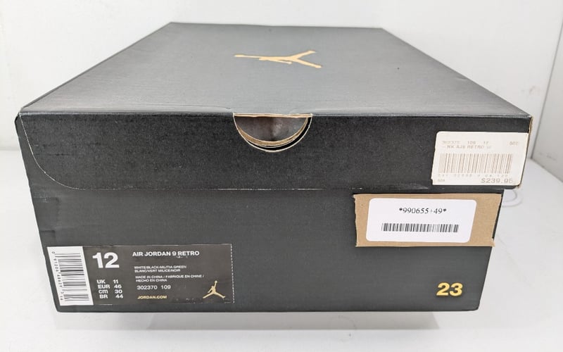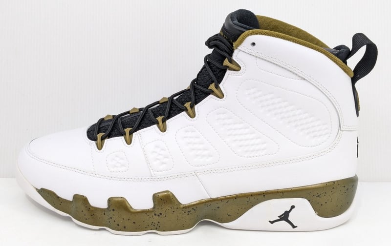 JORDAN 9 RETRO, STATUE, WHITE/BLACK-MILITIA GREEN, US12, 302370 109