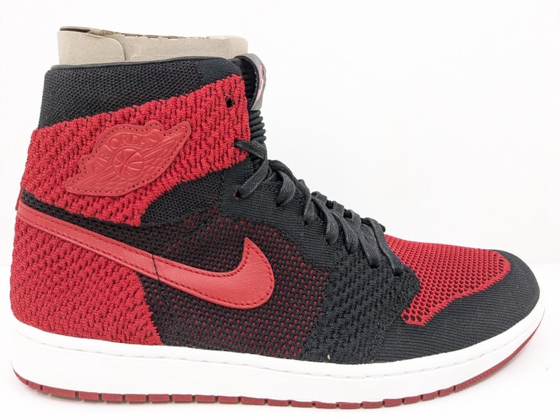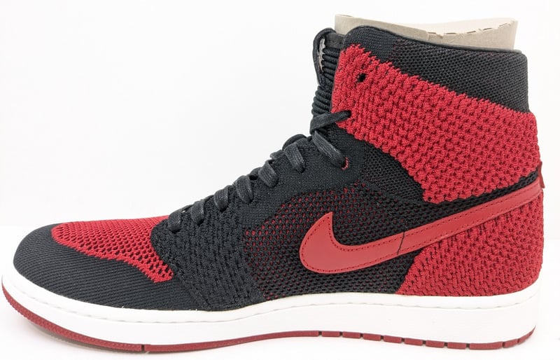 JORDAN 1 RETRO, HIGH FLYKNIT BRED, BLACK/VARSITY RED-WHITE, US12, 919704-001