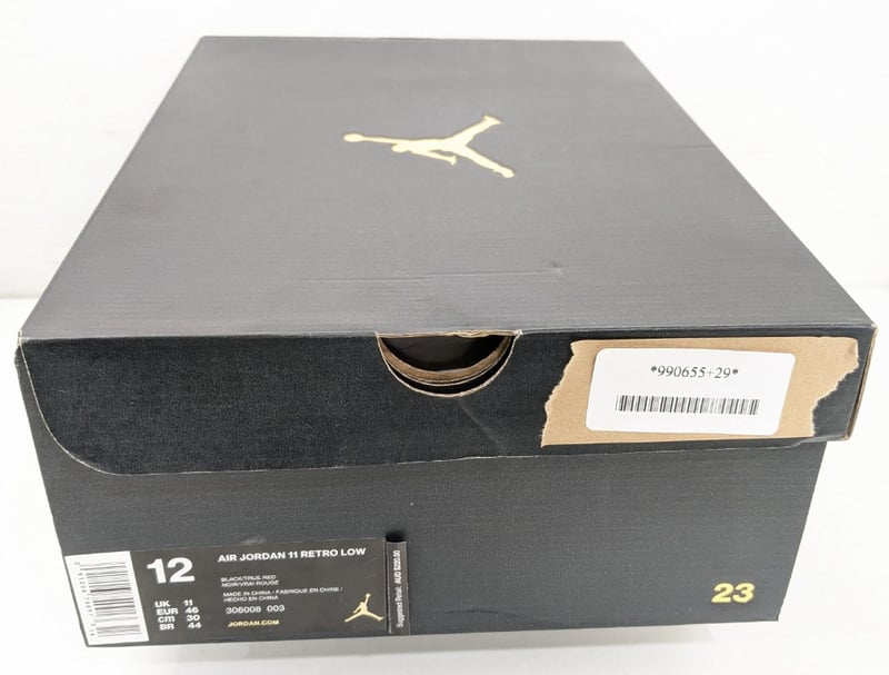 AIR JORDAN 11 RETRO LOW, REFEREE, BLACK/TRUE RED, US12 306008003 CONDITION: NEW IN BOX (REFER TO THE IMAGES)