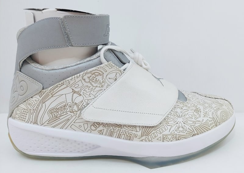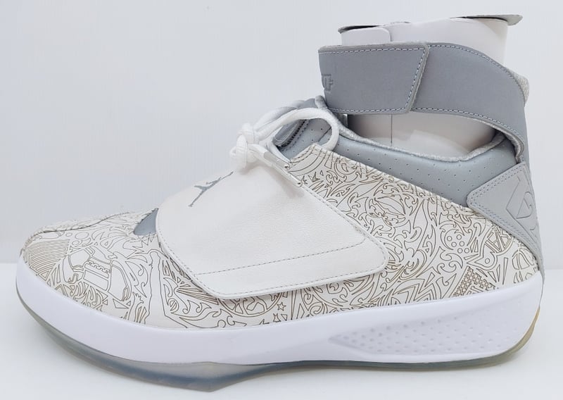 AIR JORDAN XX, 30TH ANNIVERSARY LASER, LASER WHITE/METALLIC SILVER-WHITE, US12, 743991-100