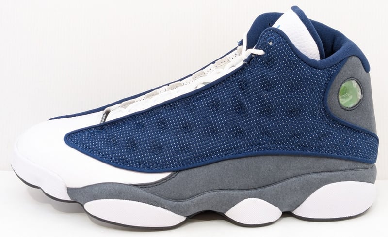 AIR JORDAN 13 RETRO, FLINT, NAVY/FLINT GREY-WHITE-UNIVERSITY BLUE, US12, 414571404 CONDITION: NEW IN BOX (REFER TO THE IMAGES)
