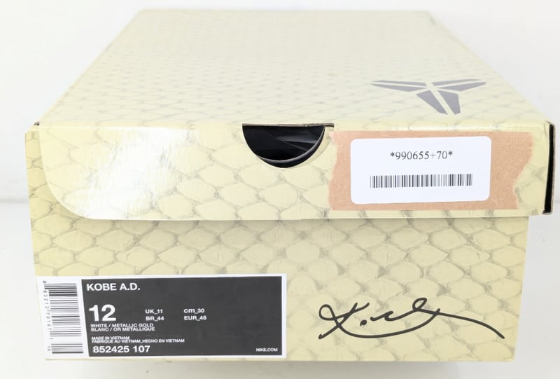 NIKE KOBE A.D, BIG STAGE, WHITE/METALLIC GOLD-GUM LIGHT BROWN, US12, 852425107