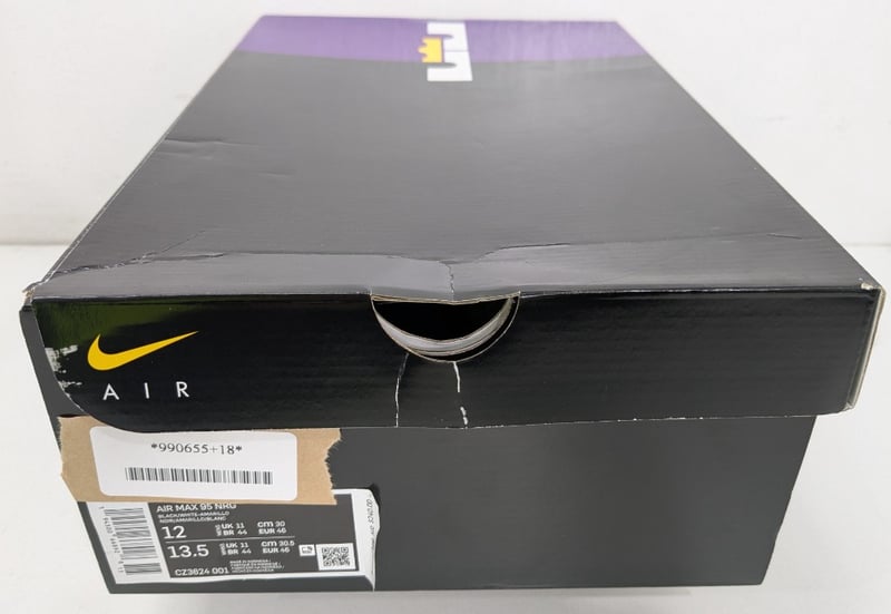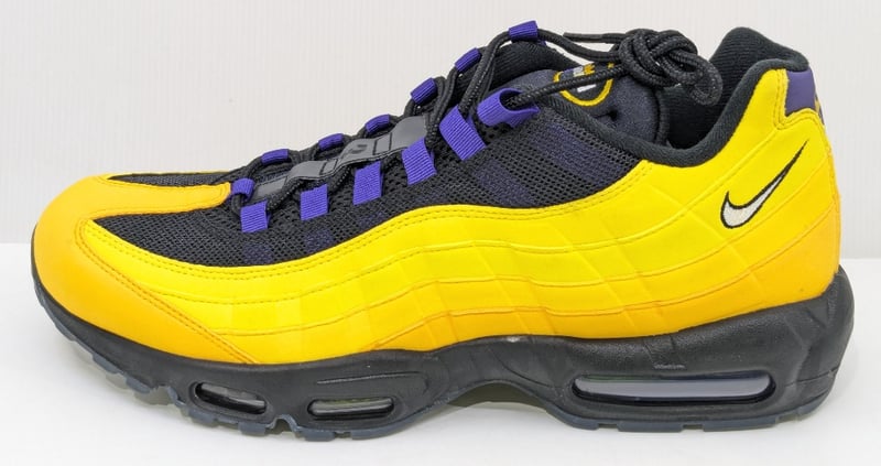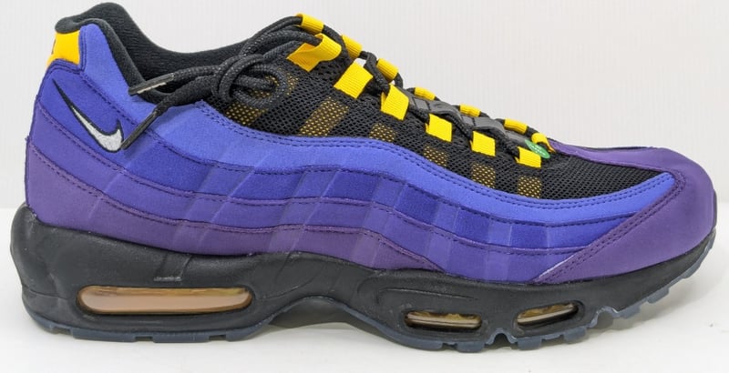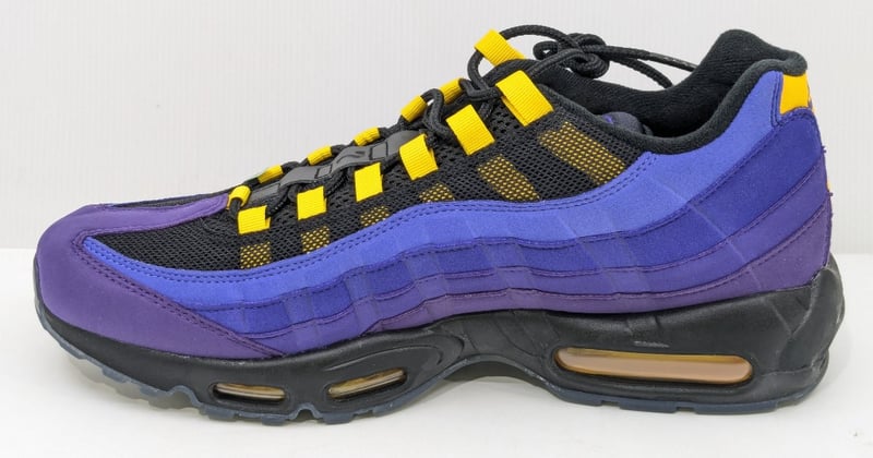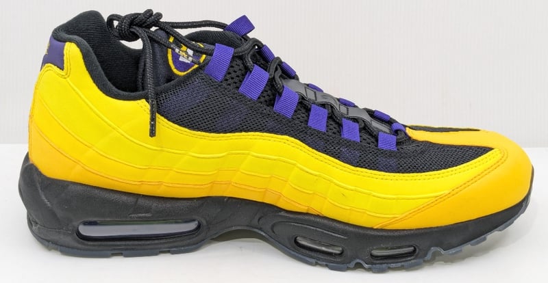 NIKE AIR MAX 95 NRG LEBRON LAKERS, BLACK/WHITE-AMARILLO-COURT PURPLE, US12, CZ3624-001