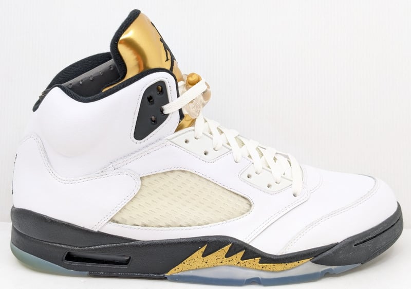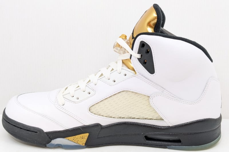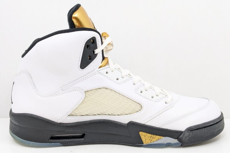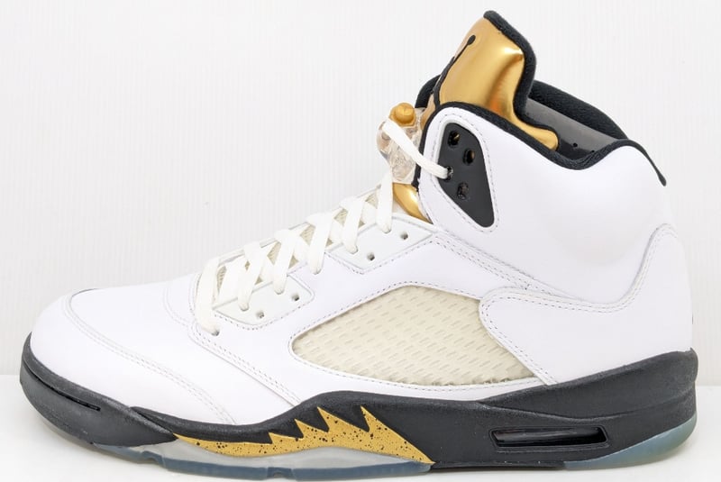 AIR JORDAN 5 RETRO, OLYMPIC, WHITE/BLACK-METALLIC GOLD COIN, US12, 136027133 CONDITION: NEW IN BOX (REFER TO THE IMAGES)