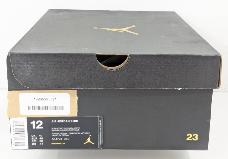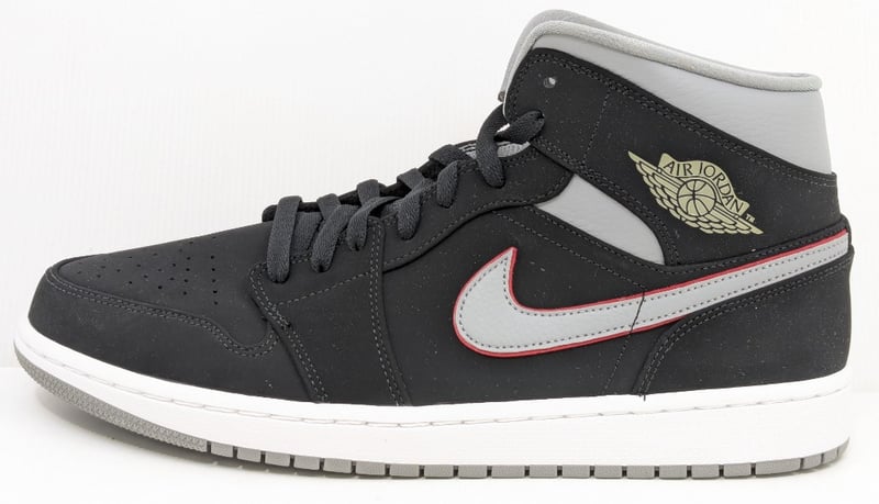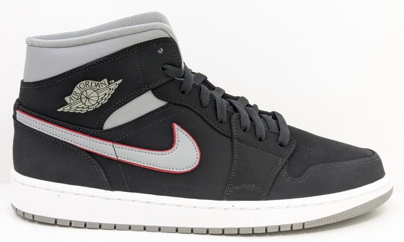AIR JORDAN 1 MID, BLACK PARTICLE GREY GYM RED, BLACK/PARTICLE GREY-WHITE-GYM RED, US12, 554724 060