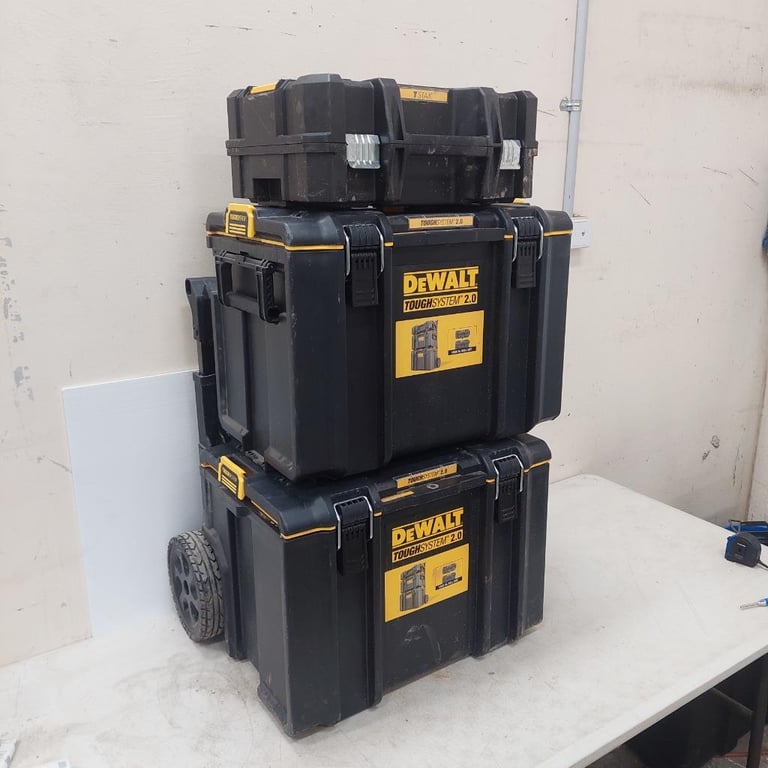 RRP $354 DeWalt Tough System 2.0, 3 Tier Case System, Hard Protective Plastic, Wheel Trolley, Water Damage