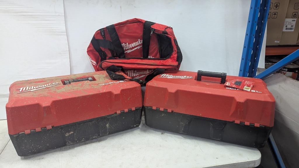 Milwaukee M18 Fuel, empty tool boxes and bag