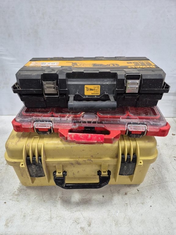 Assorted EMPTY Tool BoxsWater damaged SOLD AS LOT
