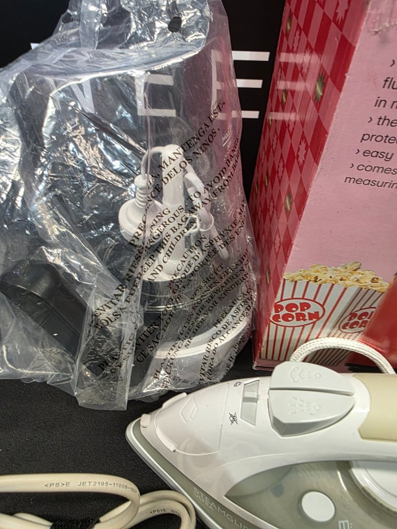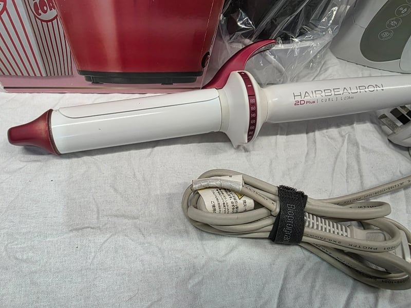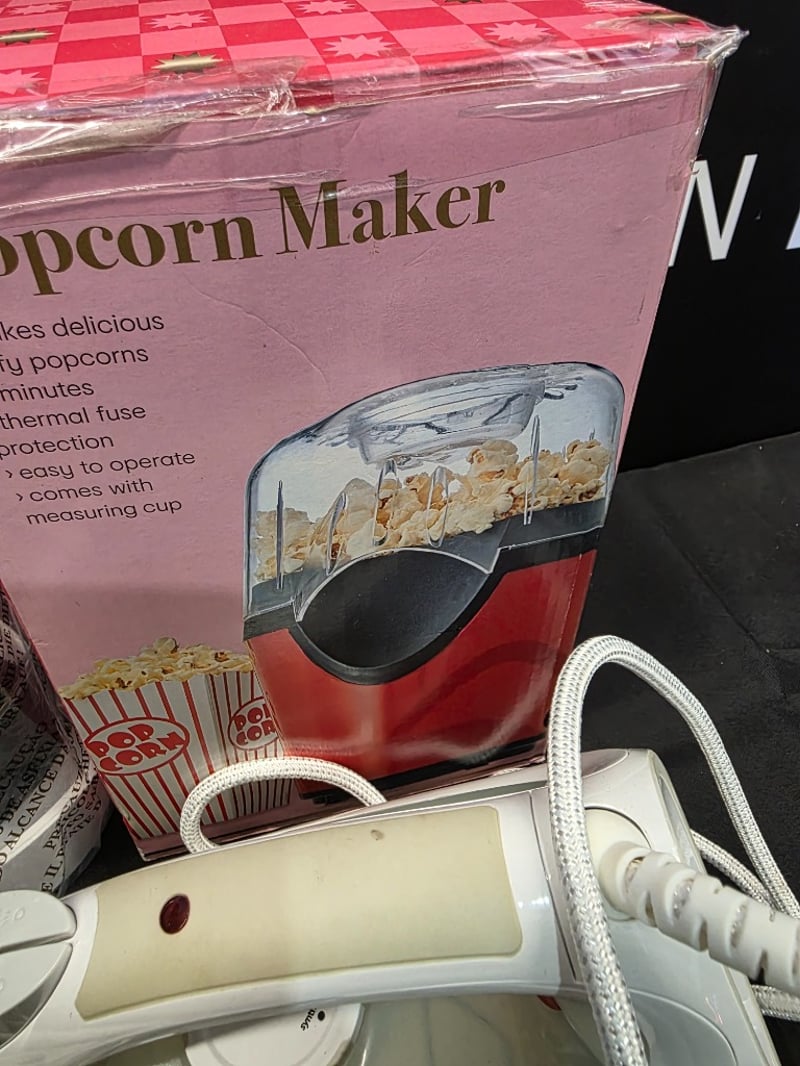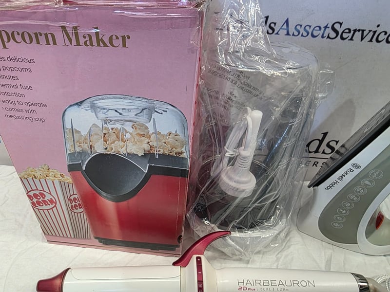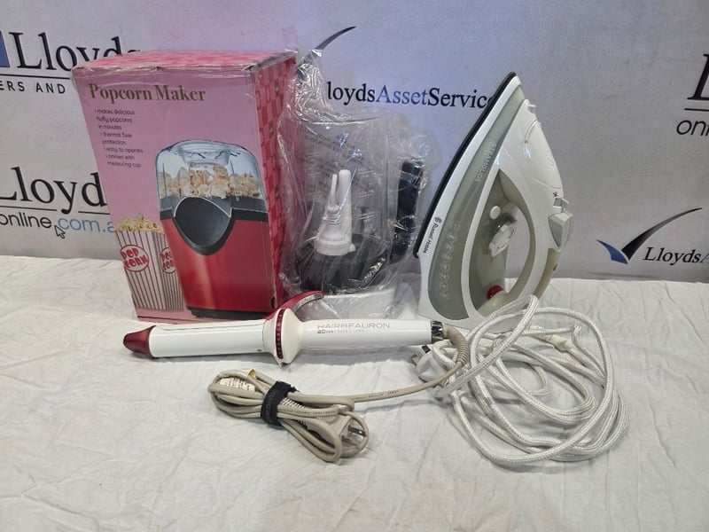 Assorted homewares including, curler, Iron, popcorn maker and more Sold as lot