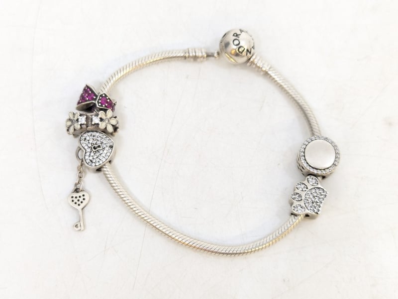 925 Silver Pandora Bracelet With Charms And Chain Necklace