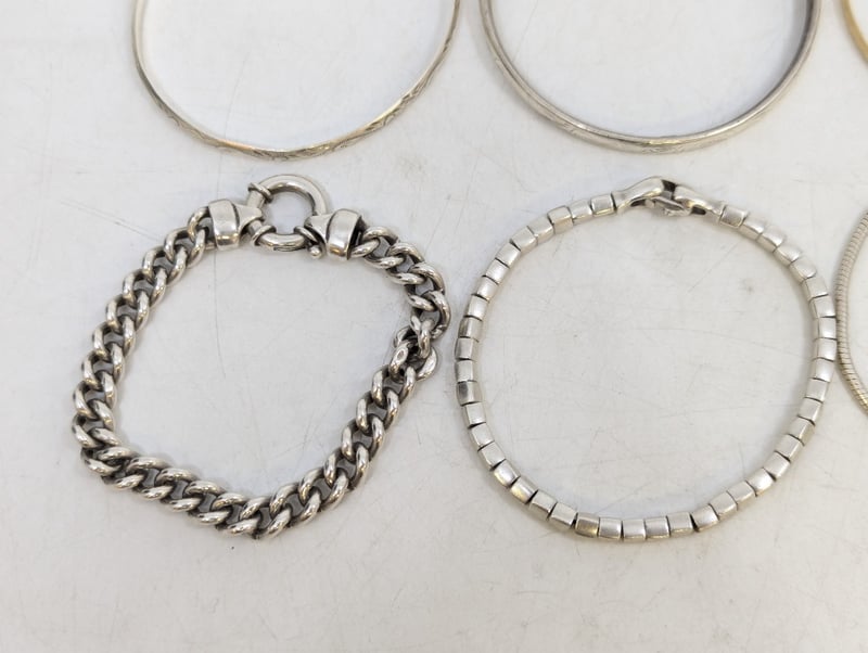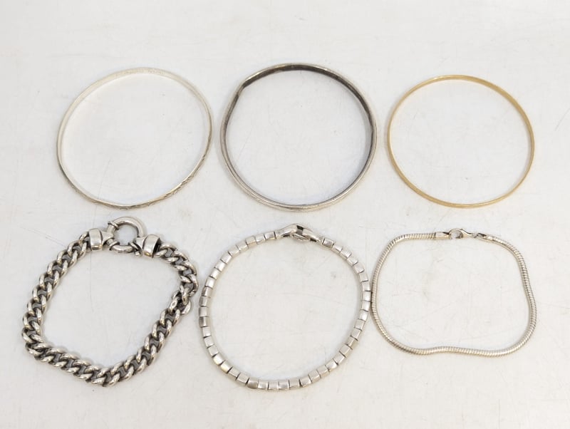 6x 925 Silver Chain Bracelet And Bangles, Items Stamped: 925Sold As Lot