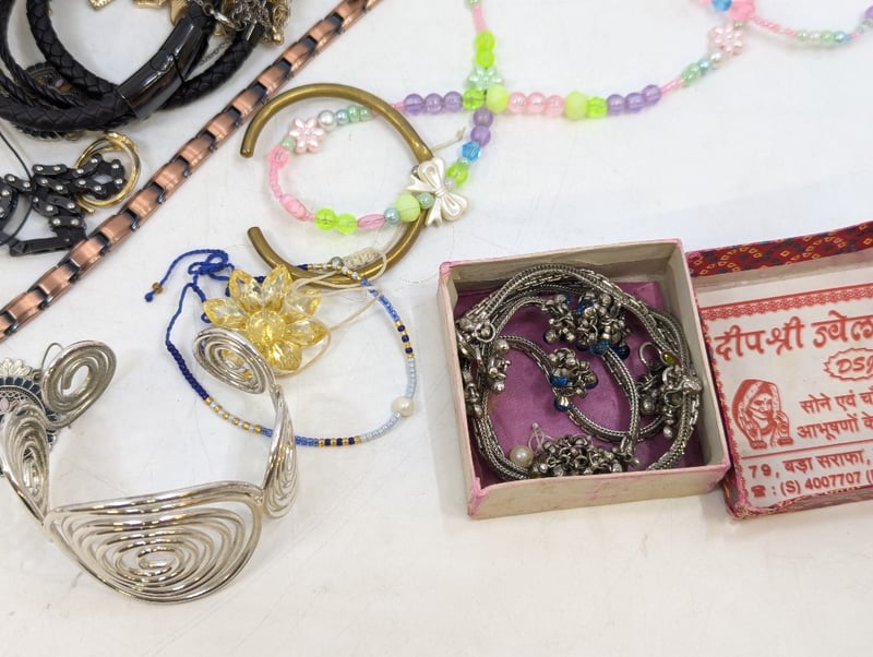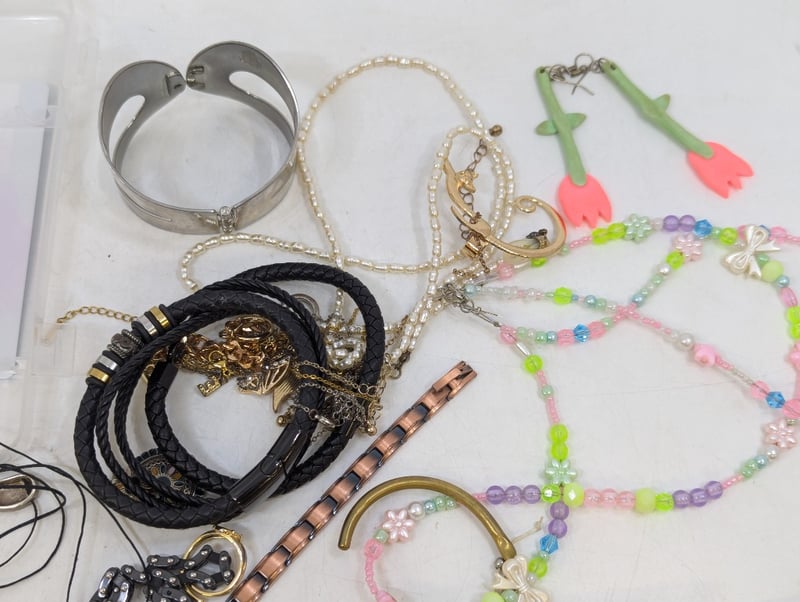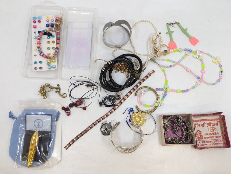 Collection of jewellery pieces including bangle, necklace, Earring, etcSold As Lot